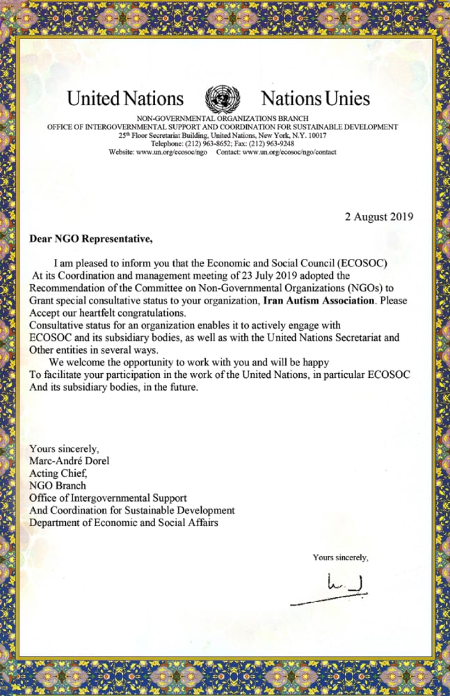 With consultative status at the United Nations (ECOSOC) and experience collaborating with leading international organizations such as the World Health Organization (WHO), the Iran Autism Association plays an active role in shaping andadvancingglobalinitiativesinthefield ofautism.